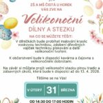 Srdečně vás zveme na příjemné velikonoční odpoledne plné tvoření a tradic. Přijďte si vyzkoušet malování kraslic voskovou technikou, zdobení dřevěných vajíček pískováním a další velikonoční tvoření. Nebude chybět ani malá kavárna a čajovna s velikonočními dobrotami.Na závěr si můžete projít […]
