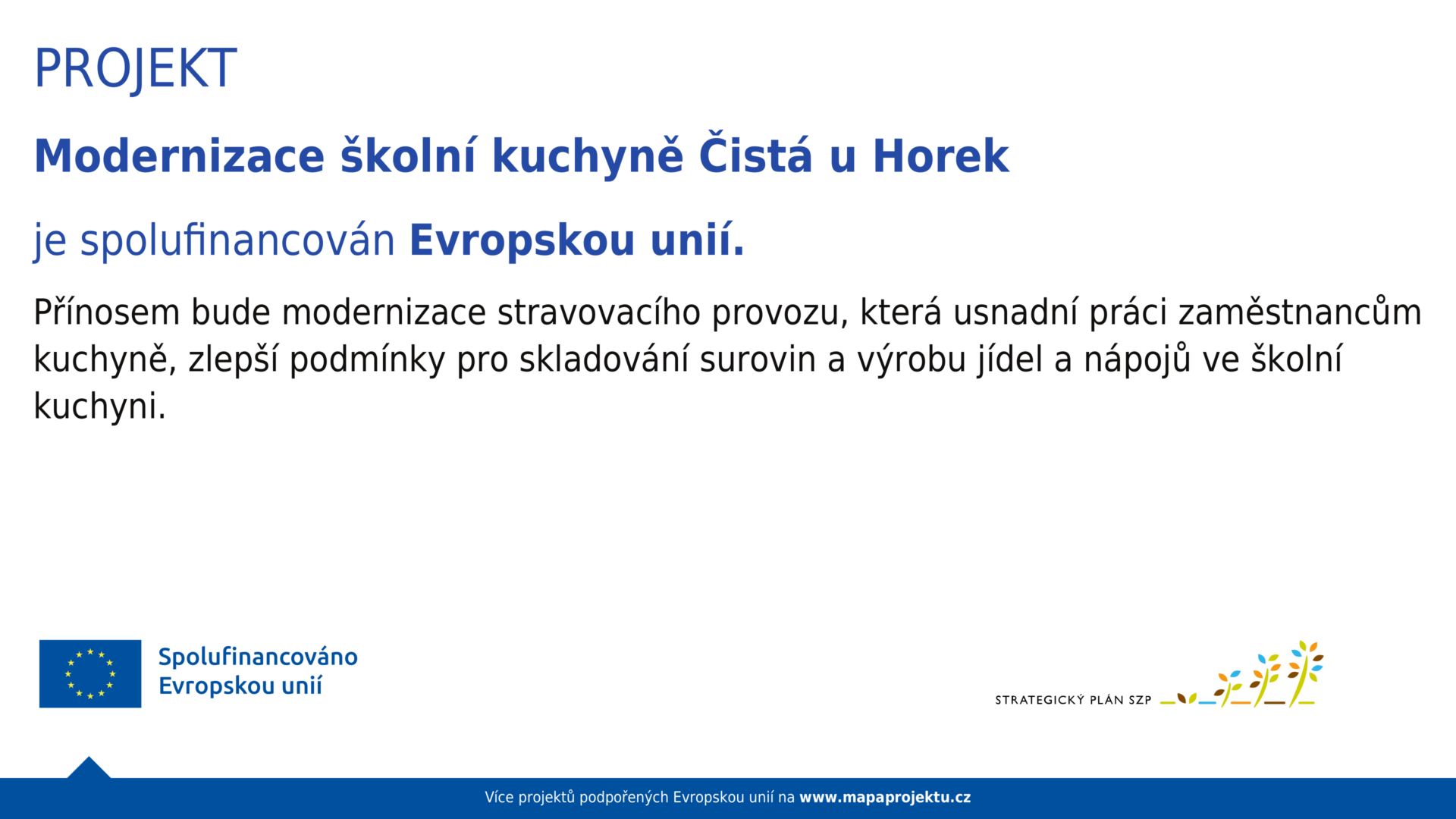 Projekt Modernizace Školní kuchyně Čistá u Horek je spolufinancován Evropskou unií.