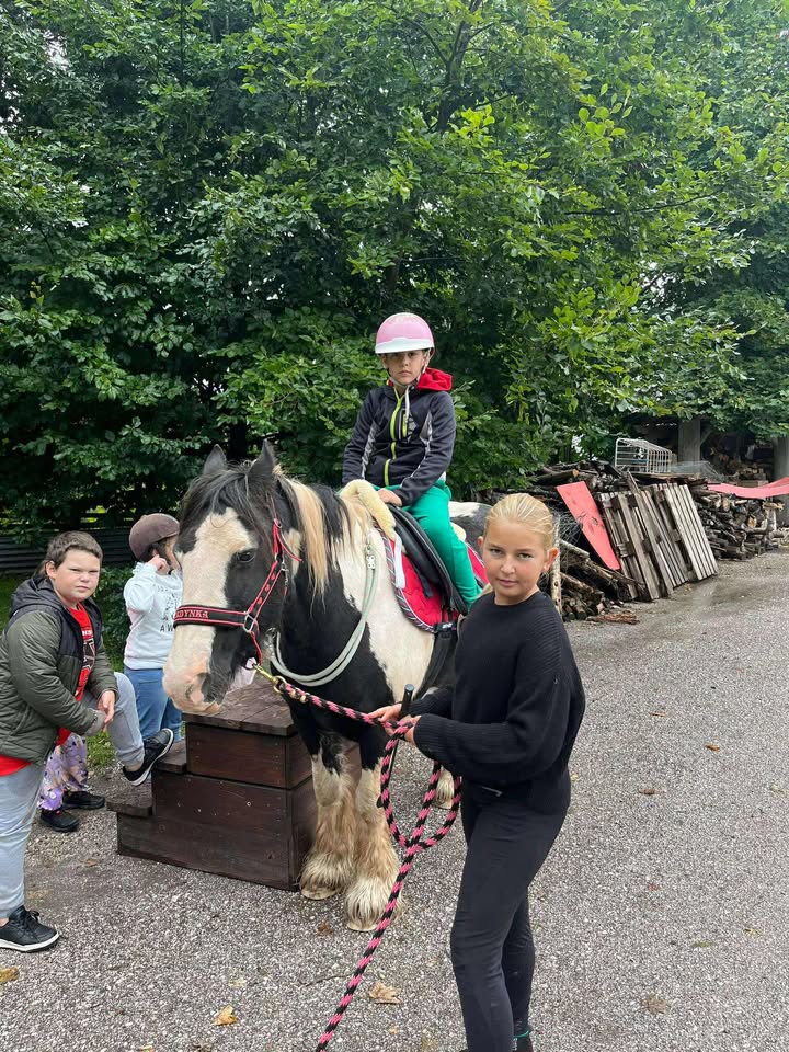 Nakonec jsme si zajezdili na koních, které jsme jim pomohli vyčistit. V kempu jsme večer opékali buřty. Nejvíc se nám líbilo v kempu na síti v lanovém parku. Adapťák se nám moc líbil a vůbec se nám nechtělo domů.” – žáci 4. ročníku