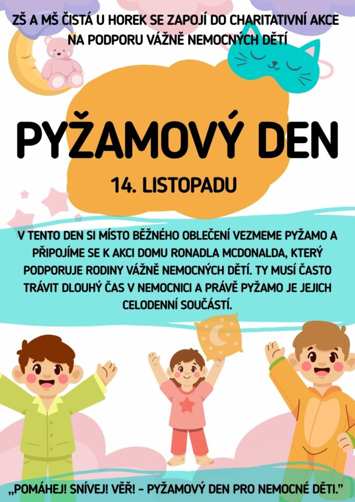 🛌 Pyžamový den, připojili jsme se k akci na podporu dlouhodobě nemocných dětí a jejich rodin 🤝😊 14 listopadu, 2025 1. stupeň, 2. stupeň, Novinky