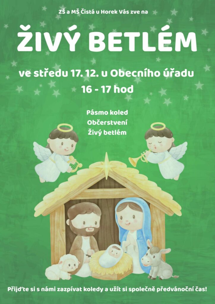 🎄🎶 Zveme Vás na společné zpívání koled ve středu 17. prosince od 16:00 do 17:00 u Obecního úřadu. Těšíme se na Vás! ✨🤗 12 prosince, 2025 1. stupeň, 2. stupeň, Novinky Živý betlém