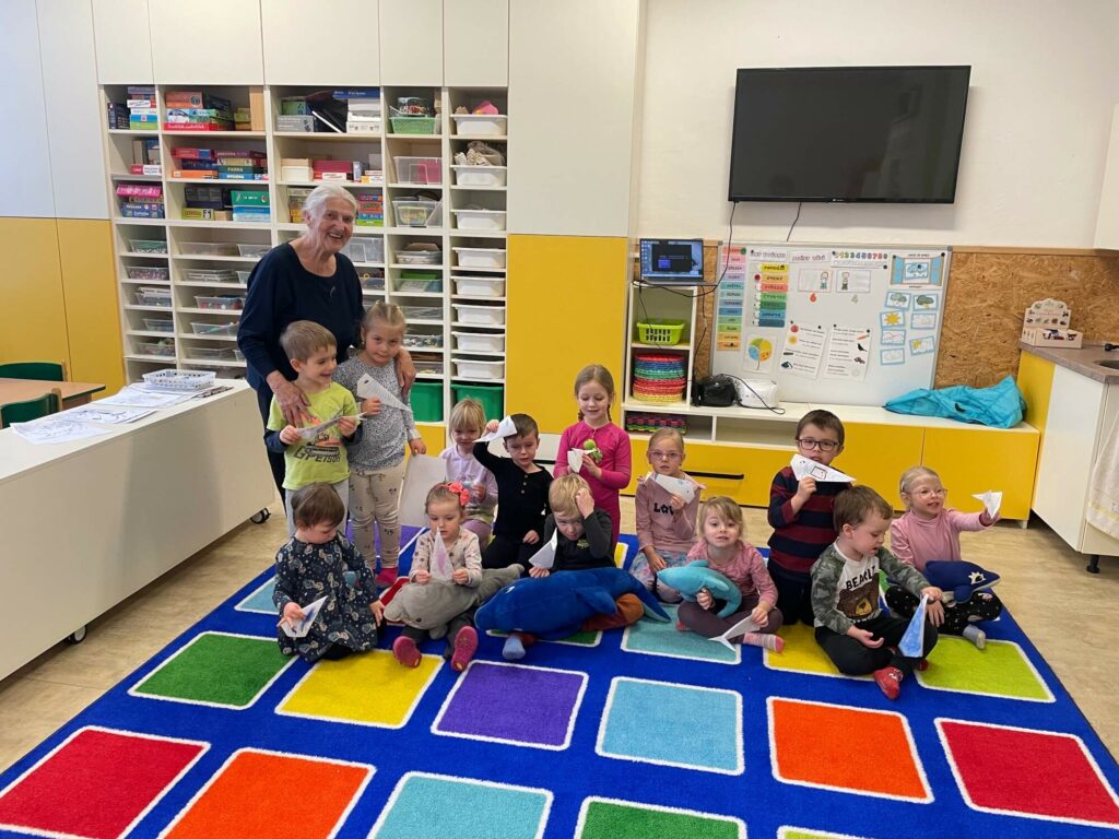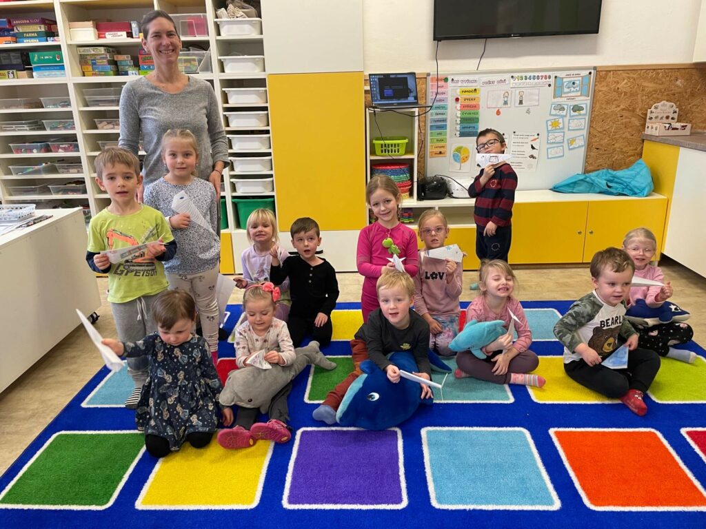Projektový den o delfínech. Dnes se děti díky „Delfínkové babičce“ ocitly ve světě delfínů, velryb, kosatek a žraloků. 🐋🦈 Nahlédly do života moří a oceánů a dozvěděly se spoustu zajímavostí o delfínech.Překvapilo nás, kolik toho děti o delfínech už věděly, a zároveň nás potěšilo, s jakým nadšením se chtěly dozvídat další informace. 💙 Seznámily se také s hlavním hrdinou příběhů – delfínem Dilem. 🐬Děti viděly příběhy o přátelství delfína s pejskem i kočičkou 🐶🐱 a z vyprávění se dozvěděly, co všechno může delfín ve svém životě prožívat. Společně jsme zjistili, že i delfíní život se v mnohém neliší od toho lidského. ✨