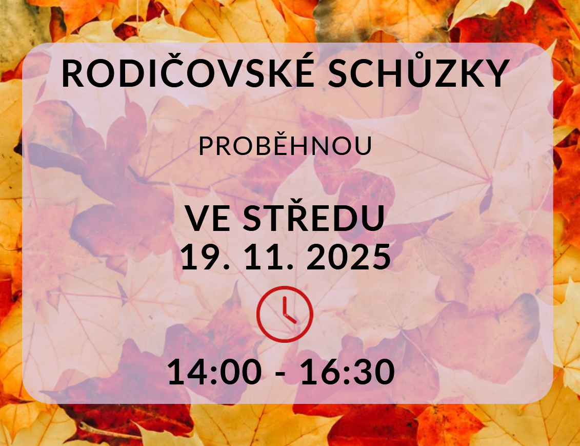 Read more →Rodičovské schůzky proběhnou ve středu 19. listopadu 2025 (14.00 – 16.30 hodin).