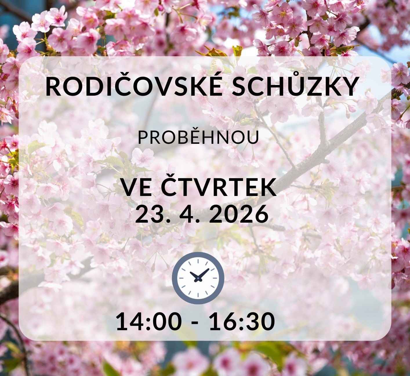 ℹ️ Rodičovské schůzky proběhnou ve čtvrtek 23. dubna 2026 (14.00 – 16.30 hodin)